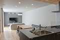 玄関入ってすぐに広がる大きな土間。中庭と繋がる開放感抜群のリビング。土間からはリビングに直接上がれる来客動線と、家族が使用する為の家族動線を確保しました。ガラスのパーテーションで仕切れば、違った雰囲気も楽しめます。キッチンやダイニングからも目が届く中庭は、お料理をしながら遊んでいるお子さまを見守ることができます。近年人気の平屋はワンフロアで生活を完結することができ、将来的にも安心です。